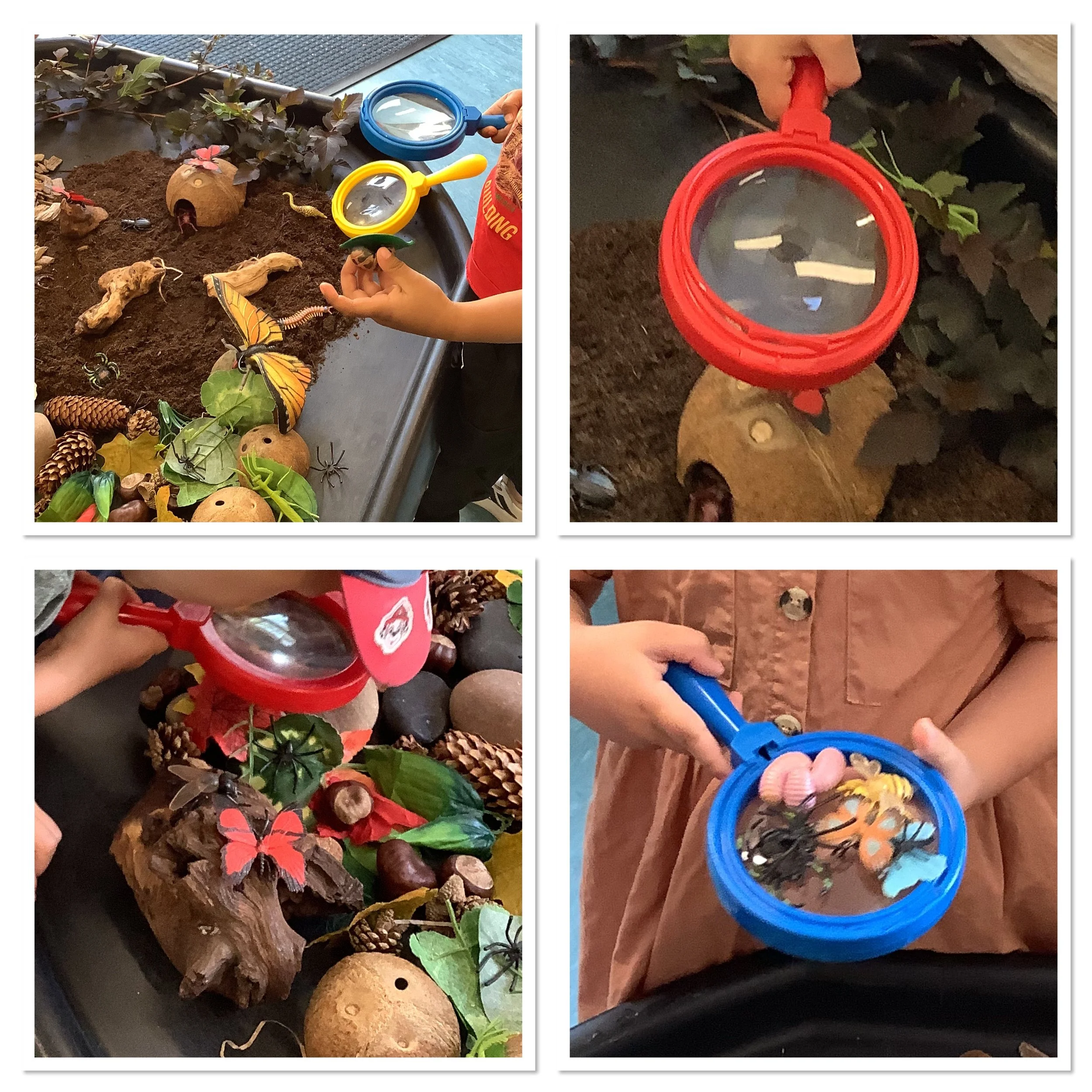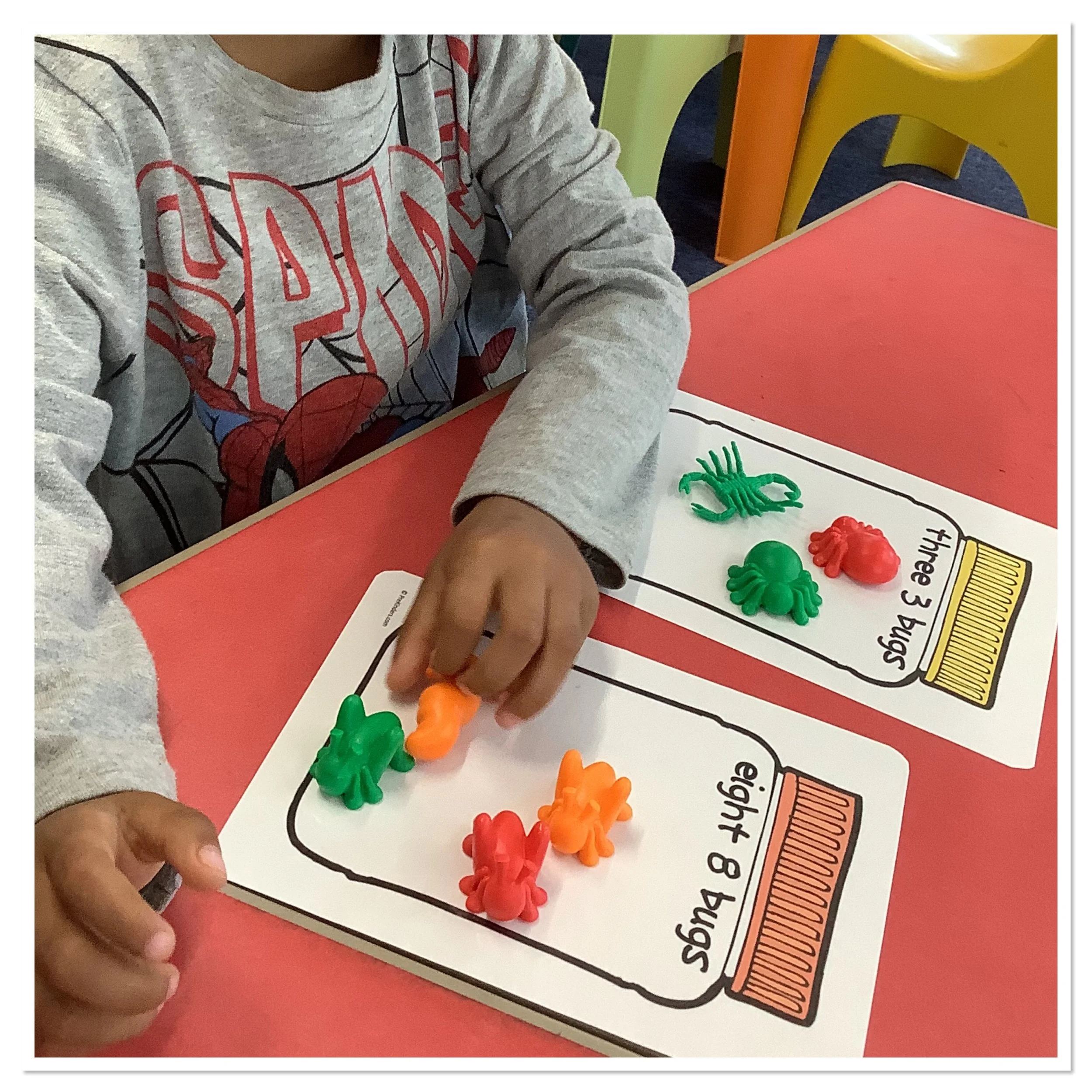 This week we have been focussing on our numeracy skills. As the children continue to be fixated on mini beasts and the amazing variety we have in our garden we decided to combine the two. Our story of the week was Superworm so we created a fine motor tuff tray and encouraged the children to count how many worms they caught, we also introduced one more and one less and thought about who had the most and least. We used shapes to create our own mini beast not only imbedding basic 2d shape names but also looking at the properties of the shapes. We rescued the mini beasts from the giant spider web, carefully using tweezers to pick them up without disturbing the web or the sleeping spiders….. and I can tell you it was very tricky!! We then counted how many we had rescued. Our STEM activities this week were also mini beast themed and we looked at the principle of air pressure and its effect on movement. We created paper caterpillars and then used straws to blow onto them. The air blown from the straw creates a force that pushes against the paper, causing it to move forward, mimicking the wiggling motion of a caterpillar. This simple activity introduces children to the concept of how air can be used to create motion. We also had some of our favourite growing worms. Dropping water onto worms made from paper towels and watching them grow due to capillary action. We also spent lots of time in the garden searching for real mini beast and we seemed to have an abundance of ladybirds. Some of our children were really interested in lining up counting and ordering our outside toys demonstrating they had understood the concepts we were looking at and independently incorporating them into their play. Wow! What another great week of learning and exploring.