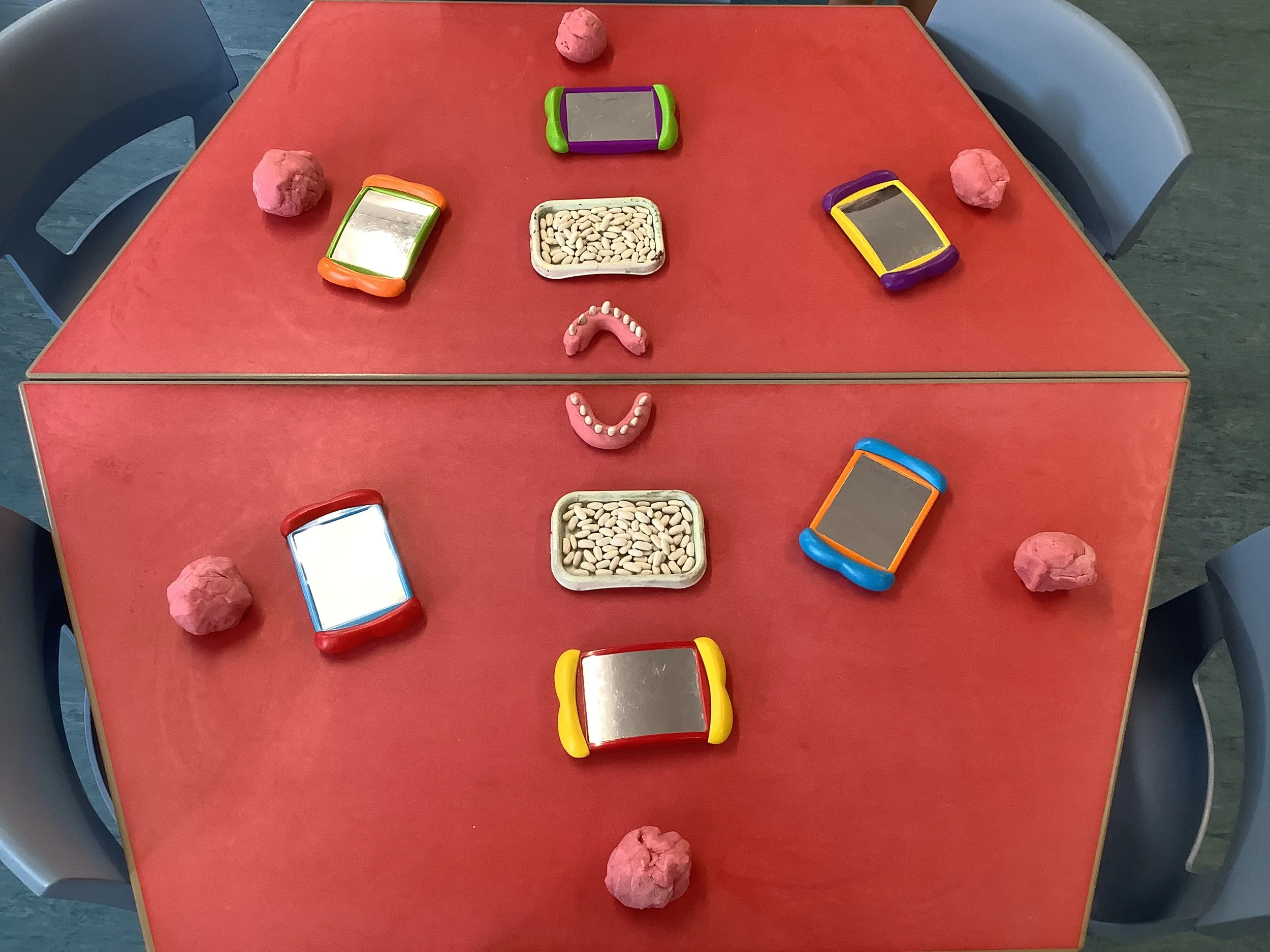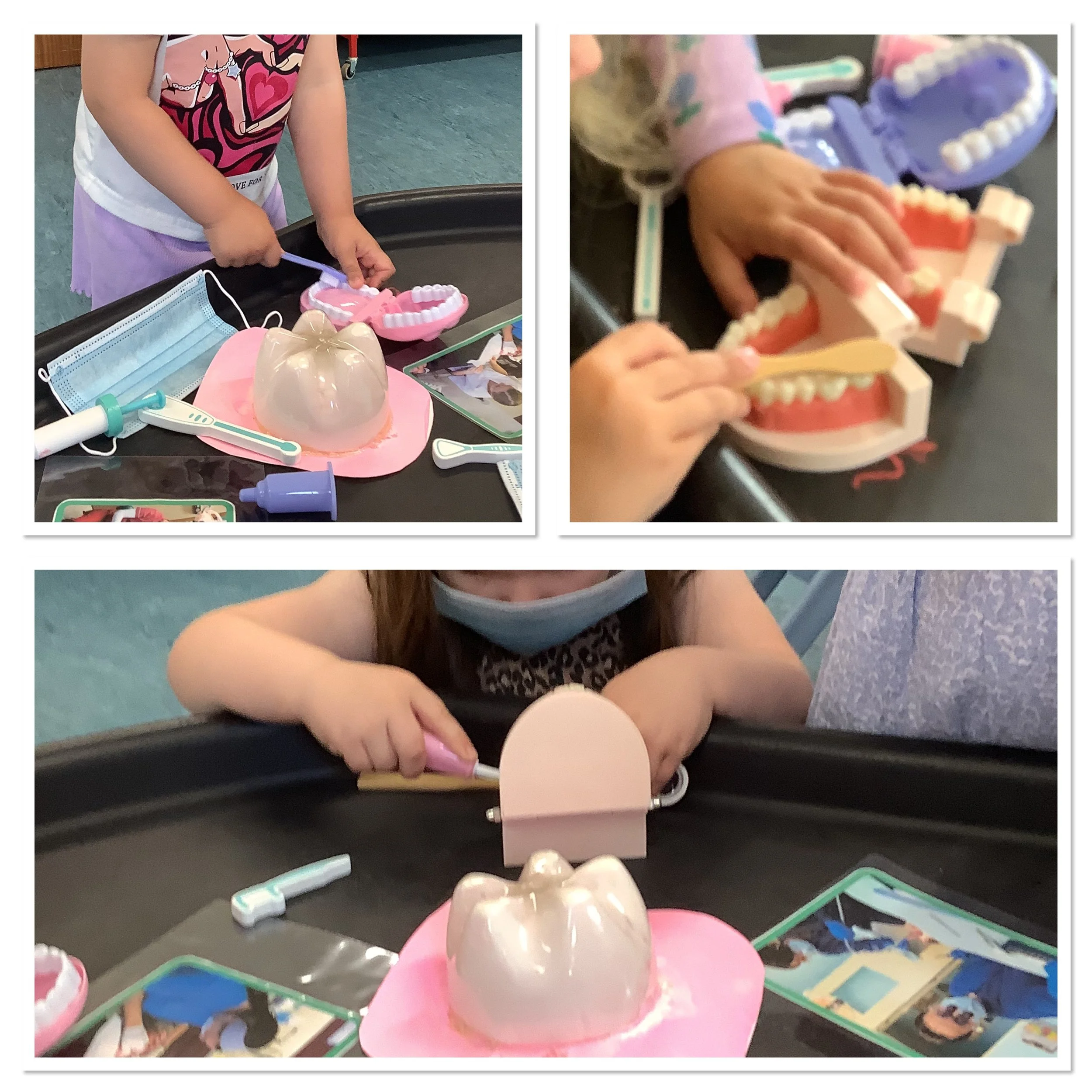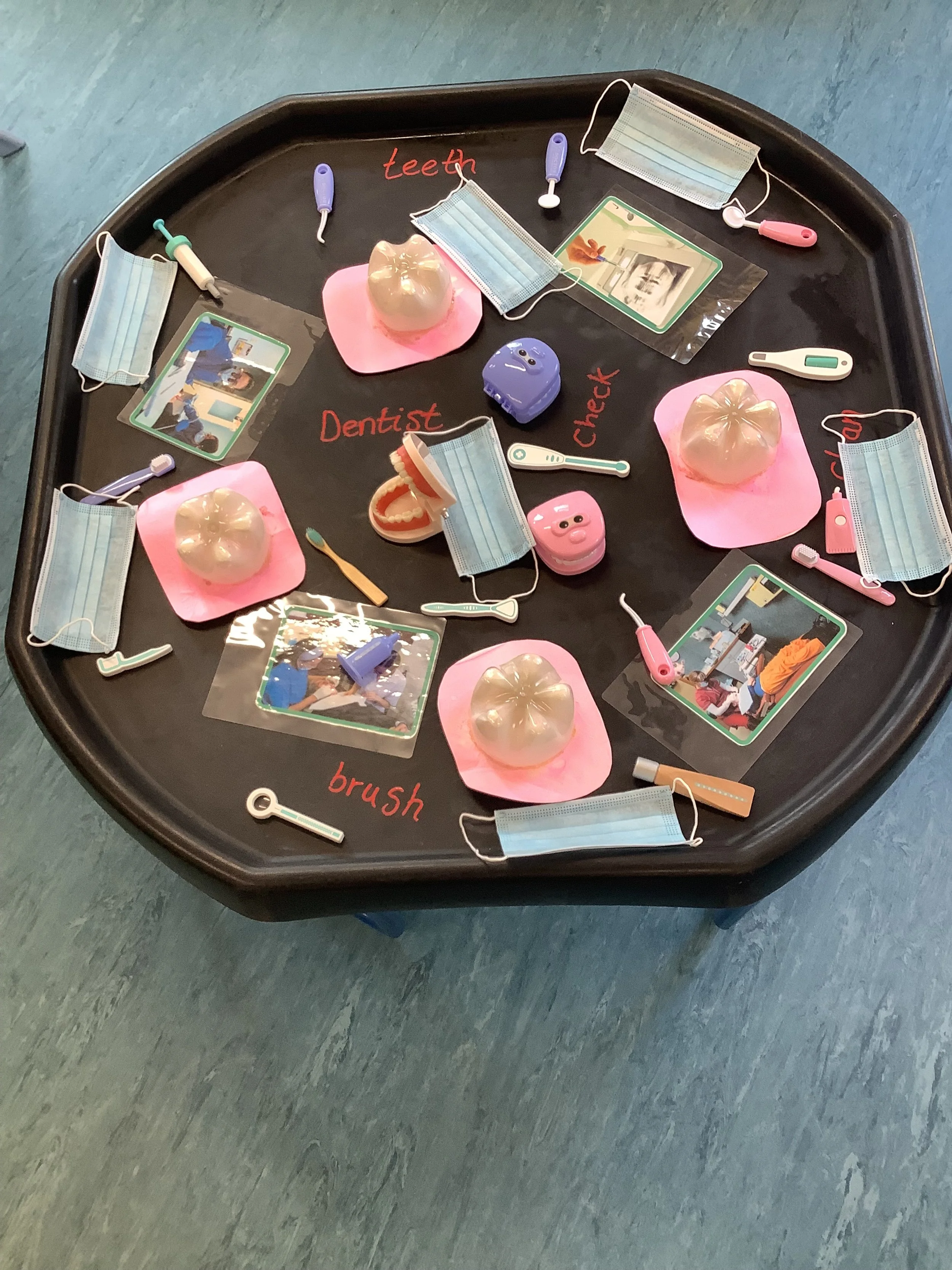 This week we have spent time thinking about oral health and keeping ourselves healthy. We looked at lots of teeth cleaning activities and what were good choices for keeping our teeth protected and cavity free. We made some tooth friendly snack recipes and explored good brushing techniques.