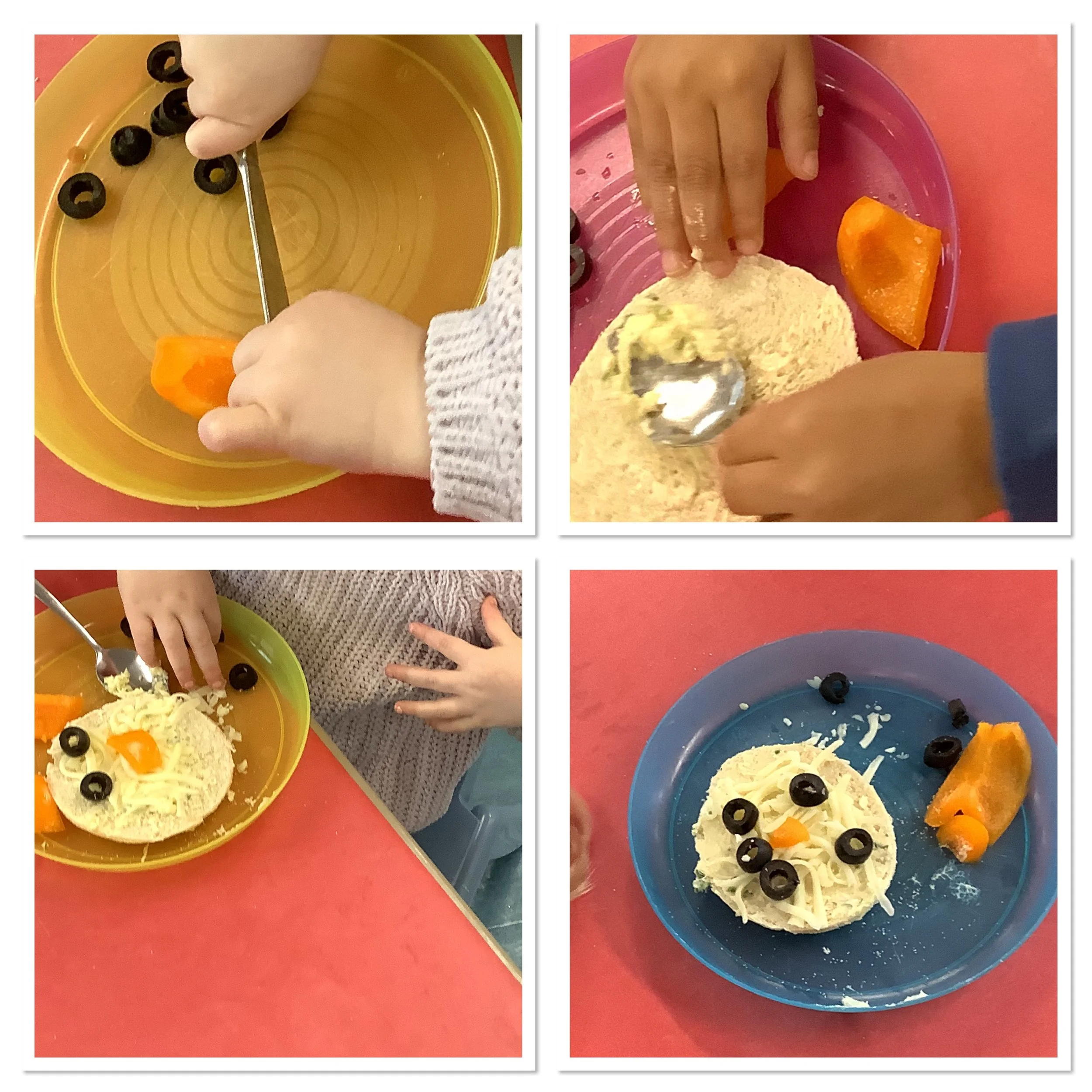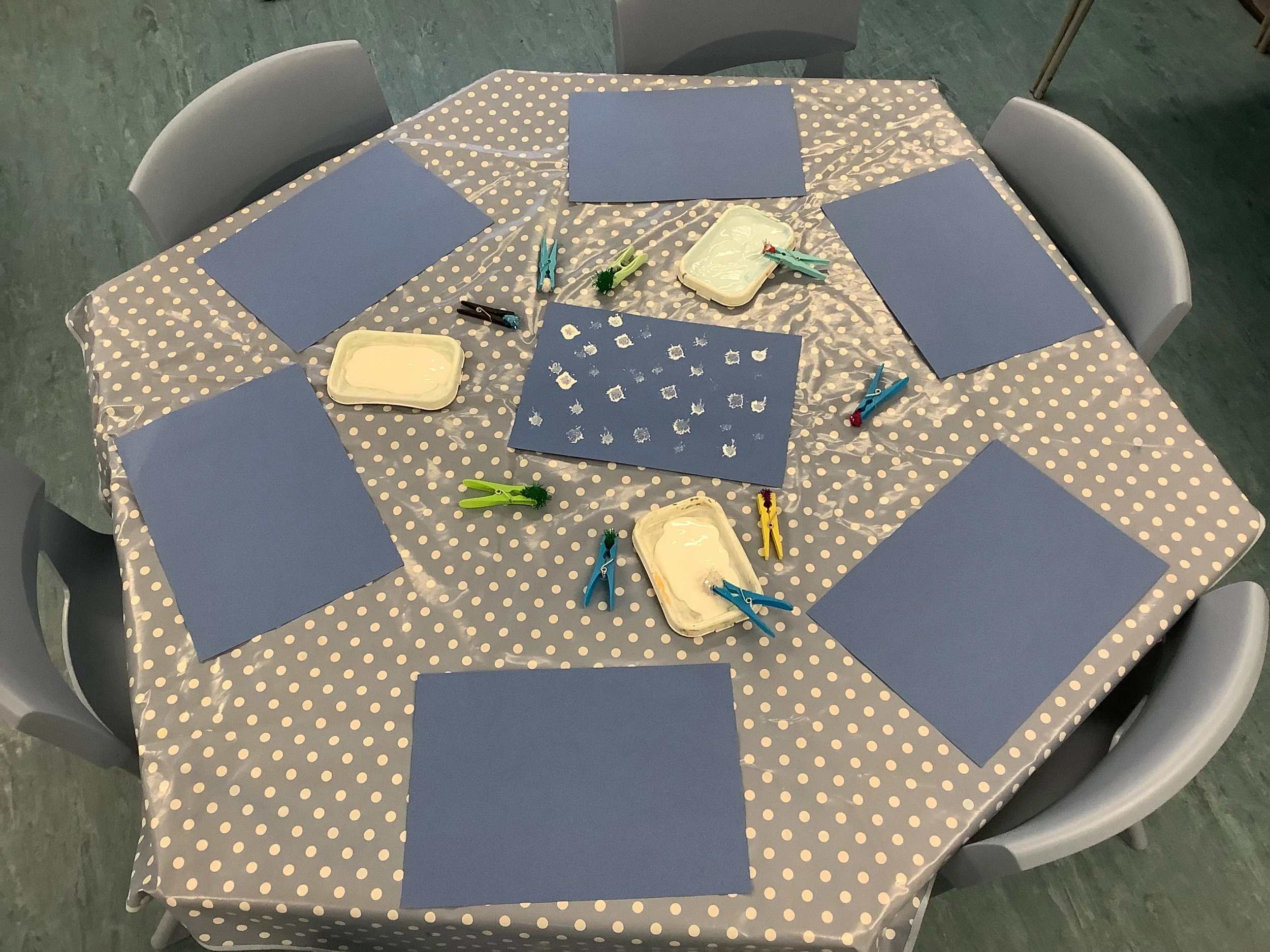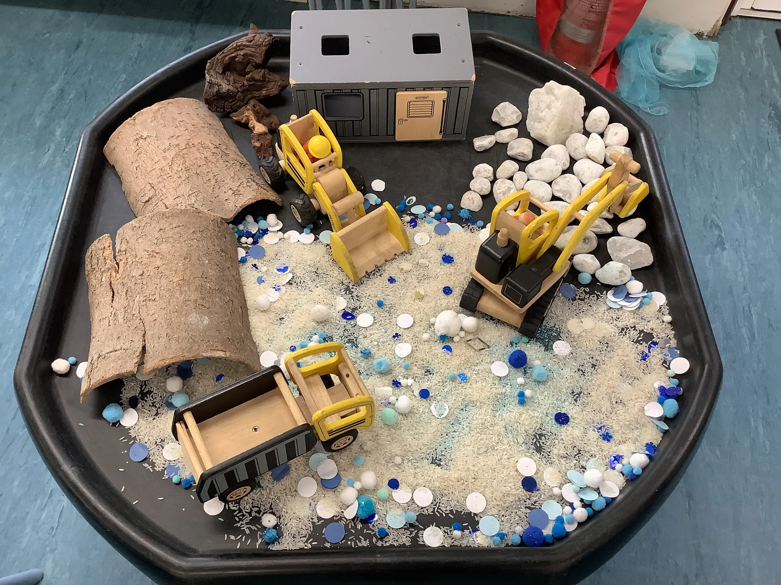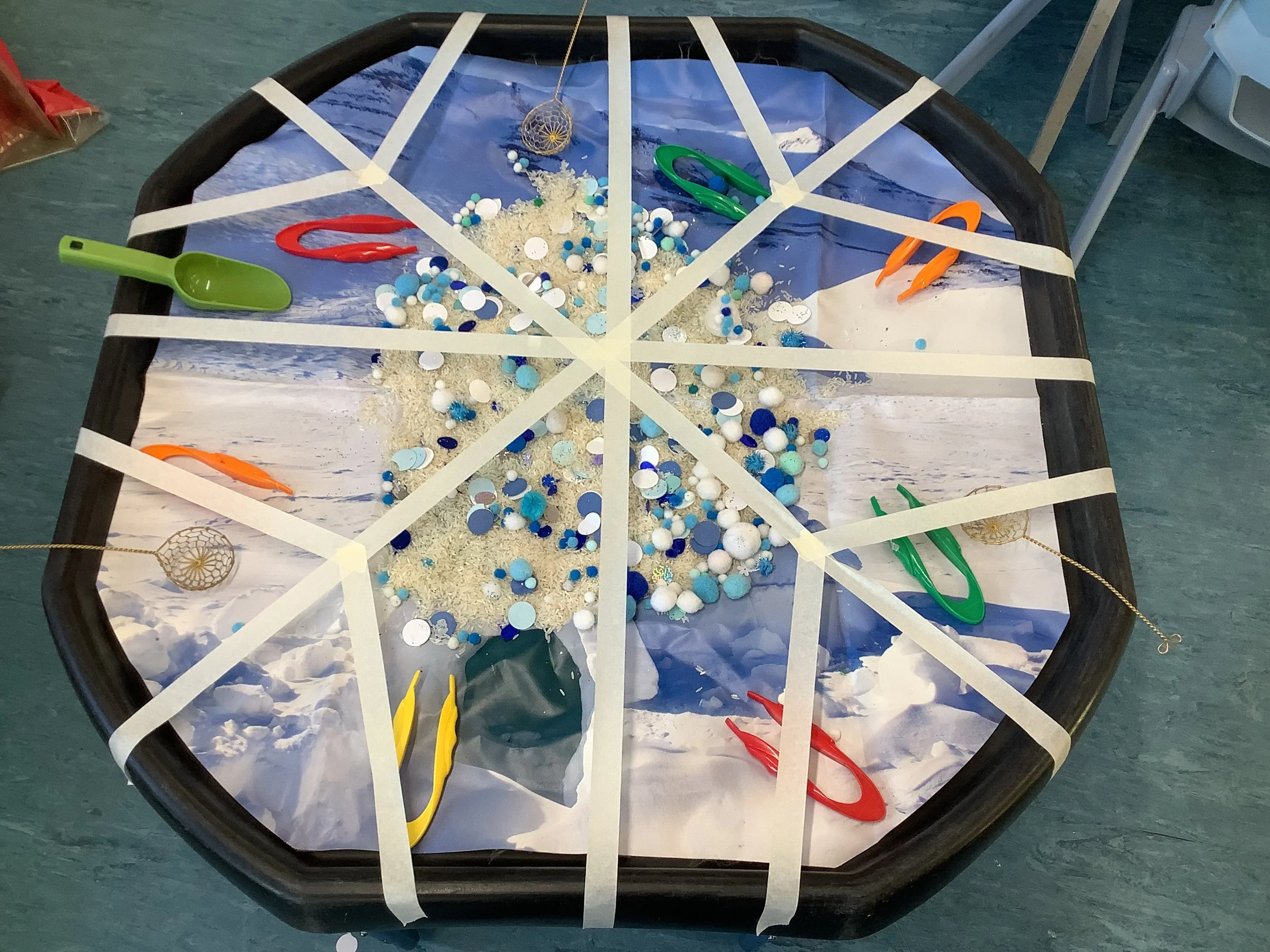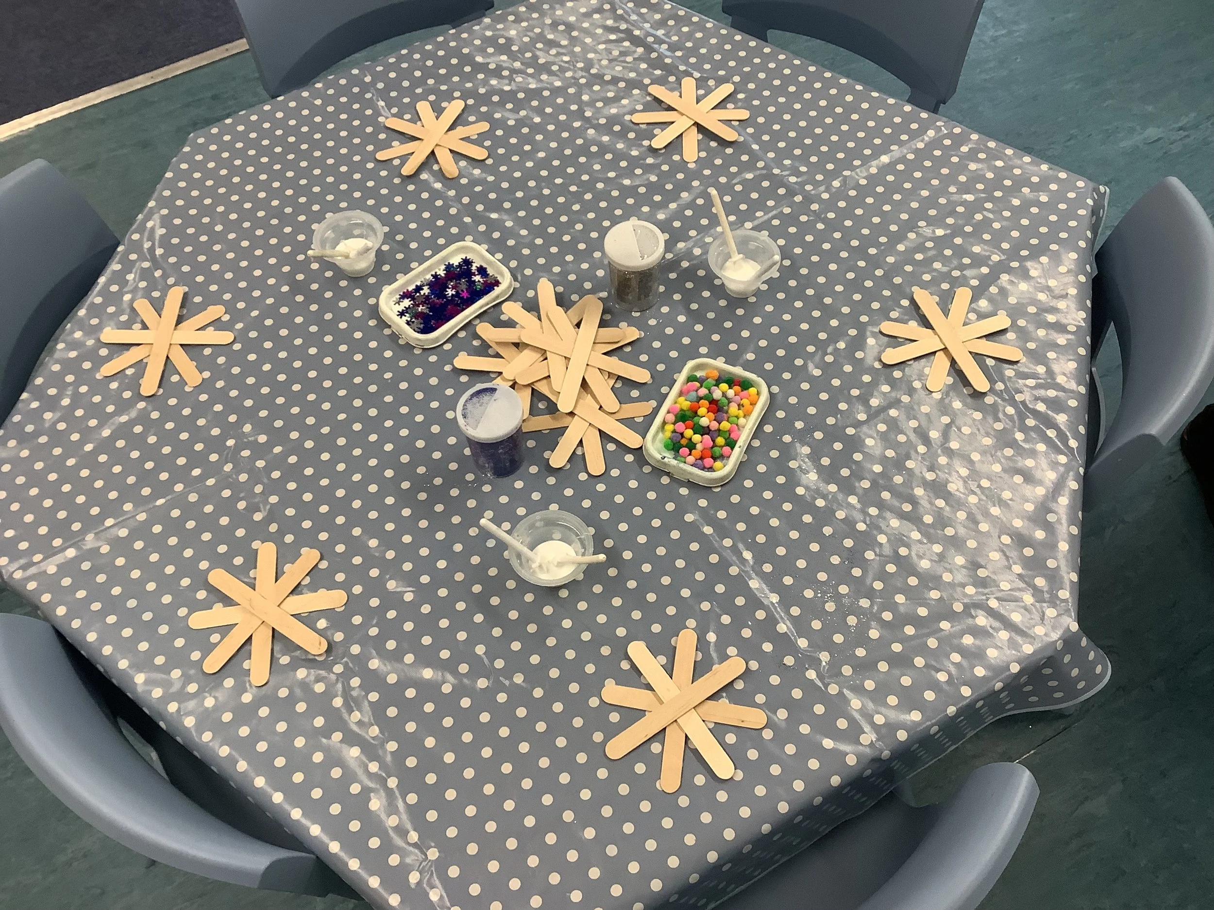 We’ve spent the last couple of weeks thinking about the beginning of winter and what the children associate this period with. When we talked to the children about winter and what it meant to them there was lots of talk about ice and snow, building snowmen and also polar animals and their habitat. Unfortunately there was no actual snow to explore so we made do with lots of sensory experiences and ice creating with some amazing structures and artwork. The children also made some snowmen garlic bread muffins and blueberry and white chocolate rice cake snowflakes. Snow and ice are very broad themes and we were able to incorporate lots of the children’s ideas and interests in each activity and they really enjoyed the winter construction site and the skating penguins who actually moved around as the ice melted. We also spent time creating our “Jolly Roll Christmas Tree” entry to the Landbeach Tree Festival, the children carefully painted what seemed like hundreds of toilet rolls and created beautiful decorations to decorate our lovely tree and this got us all in the Christmas spirit. We were also all very excited to begin opening our advent calendars. This year we had one with all the staff and children hiding behind the doors of our gingerbread house and also a cottage story one. The staff read a different story in session each day and have spent time recording the stories too so that even if it’s not a playgroup day the children can still hear and see the stories at home. Remember to come back next week and see all of our Christmas activities