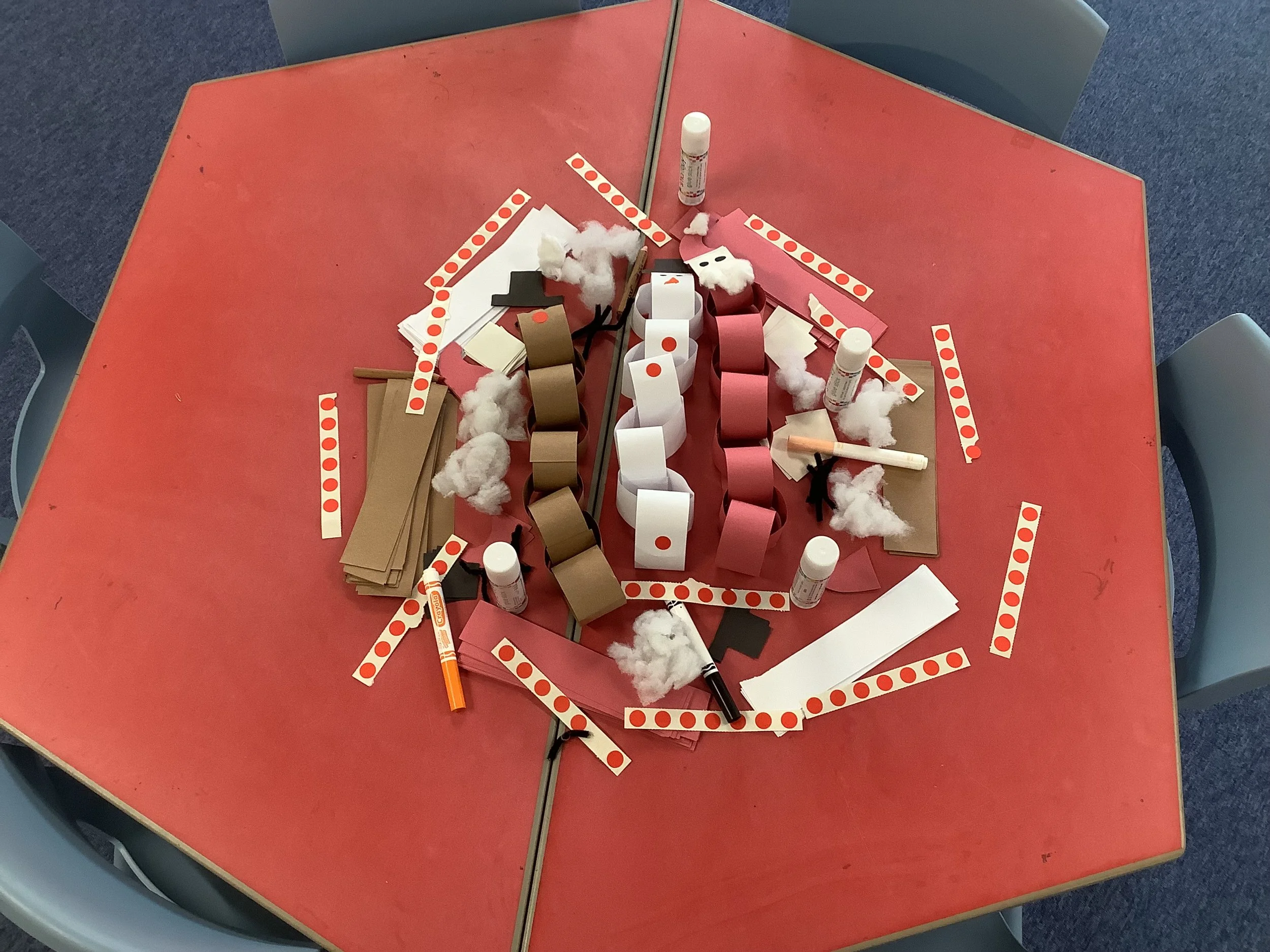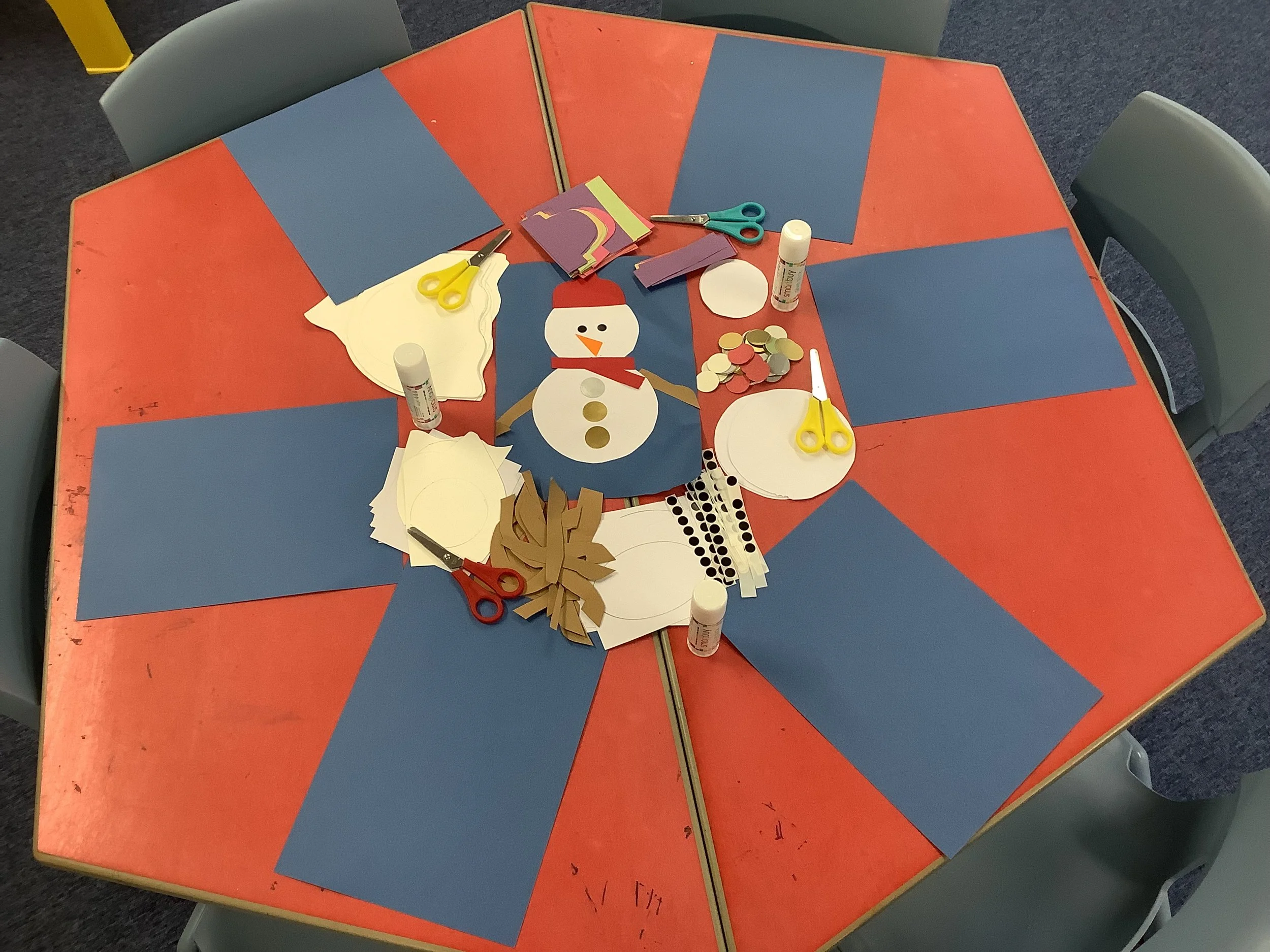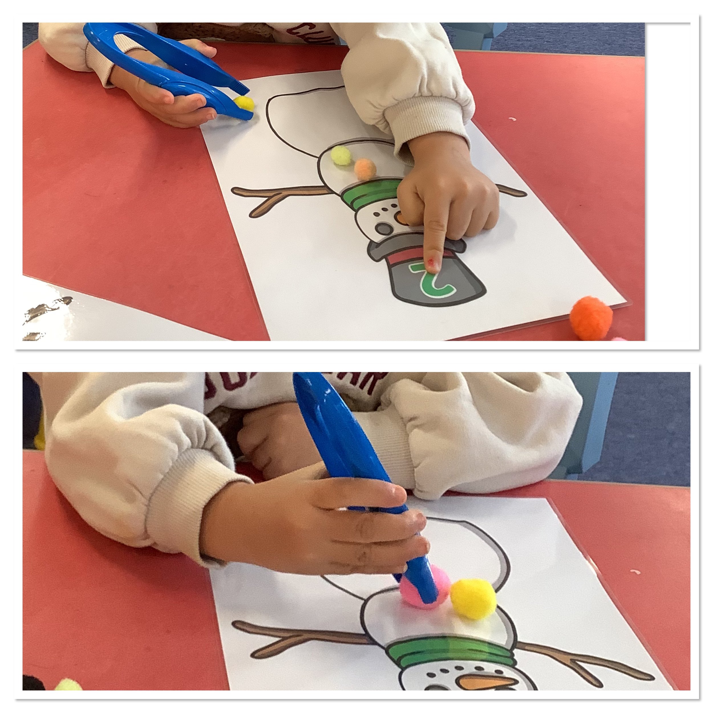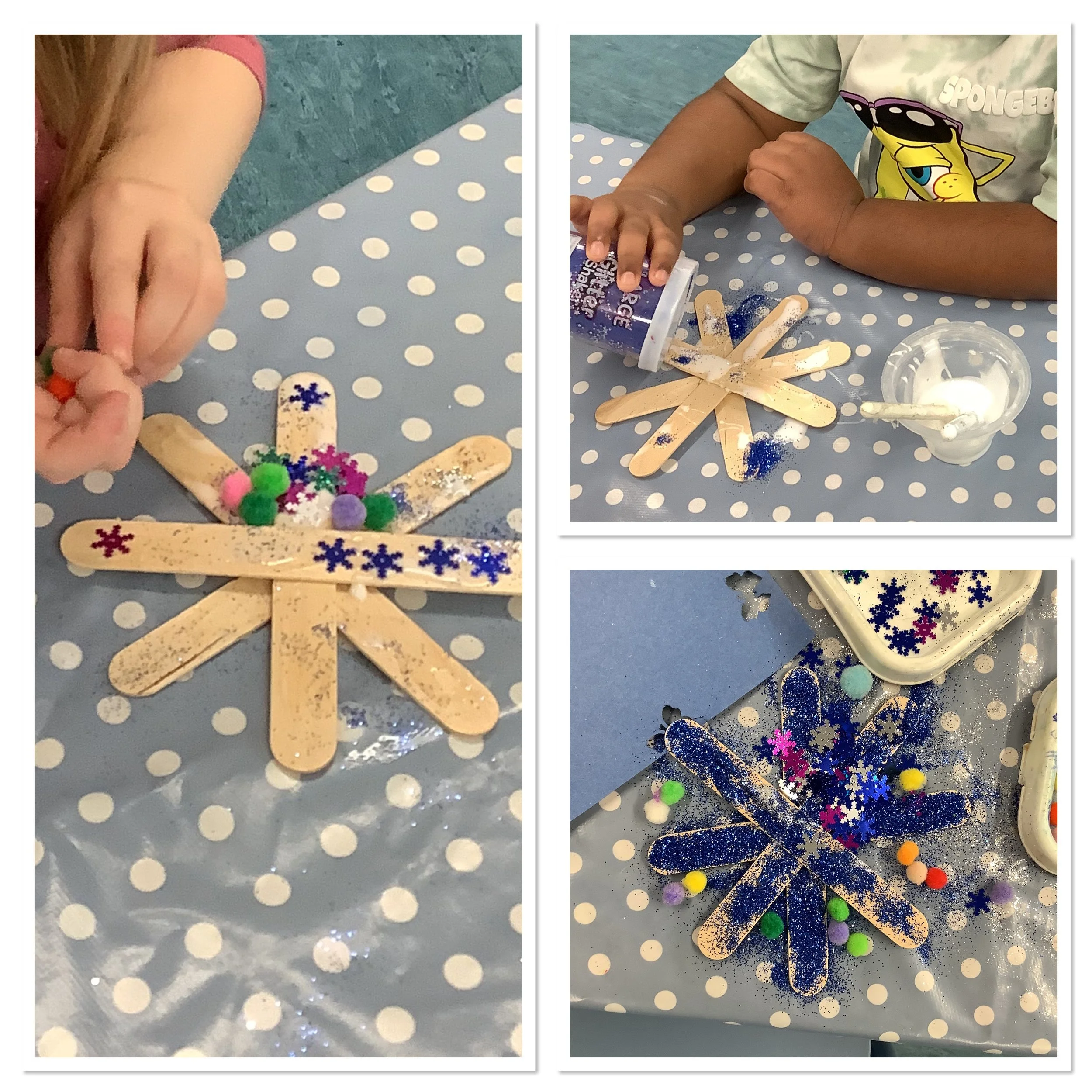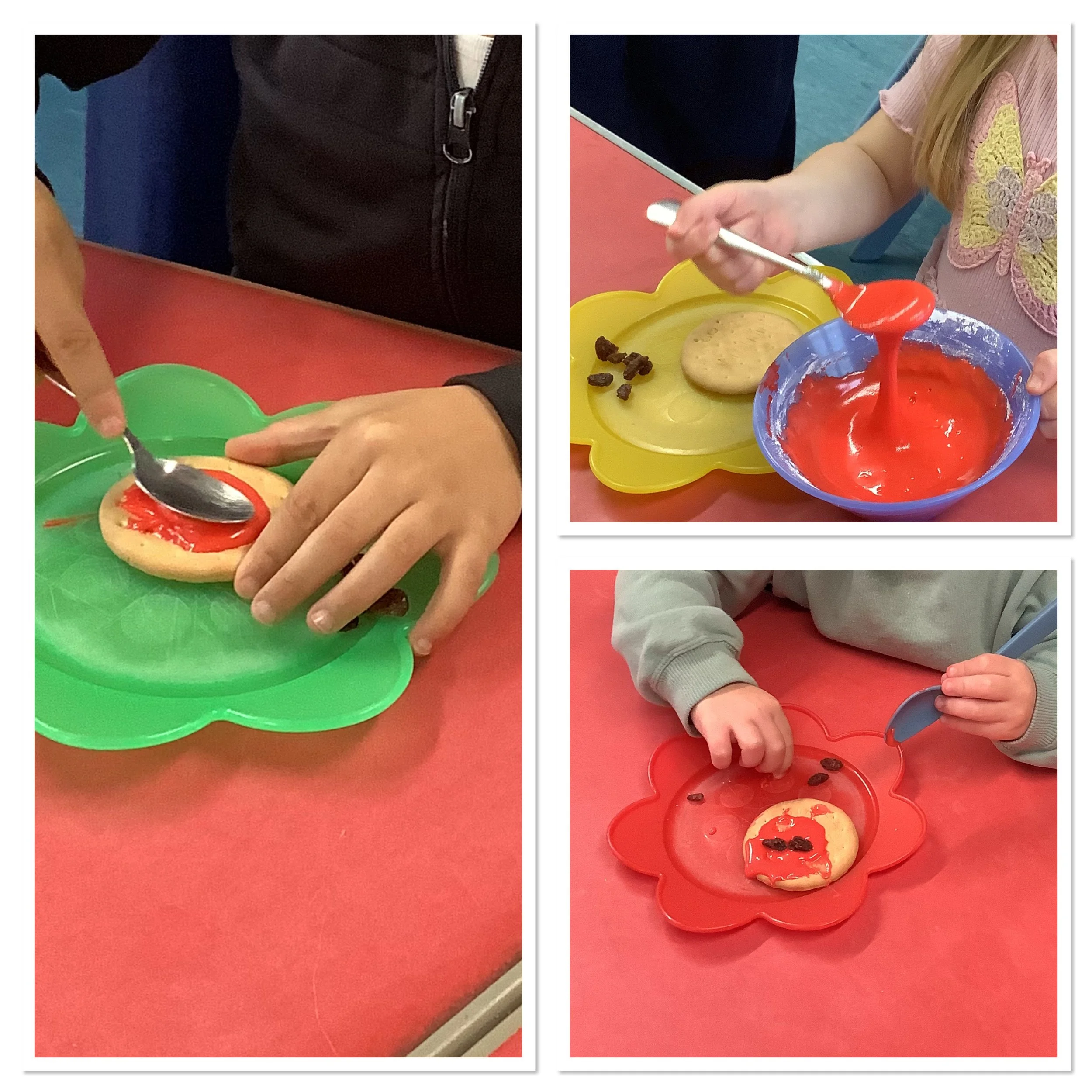 We’ve spent the last couple of weeks thinking about the beginning of winter and what the children associate this period with. When we talked to the children about winter and what it meant to them there was lots of talk about ice and snow, building snowmen and also polar animals and their habitat. Unfortunately there was no actual snow to explore so we made do with lots of sensory experiences and ice creating with some amazing structures and artwork. The children also made some snowmen garlic bread muffins and blueberry and white chocolate rice cake snowflakes. Snow and ice are very broad themes and we were able to incorporate lots of the children’s ideas and interests in each activity and they really enjoyed the winter construction site and the skating penguins who actually moved around as the ice melted. We also spent time creating our “Jolly Roll Christmas Tree” entry to the Landbeach Tree Festival, the children carefully painted what seemed like hundreds of toilet rolls and created beautiful decorations to decorate our lovely tree and this got us all in the Christmas spirit. We were also all very excited to begin opening our advent calendars. This year we had one with all the staff and children hiding behind the doors of our gingerbread house and also a cottage story one. The staff read a different story in session each day and have spent time recording the stories too so that even if it’s not a playgroup day the children can still hear and see the stories at home. Remember to come back next week and see all of our Christmas activities