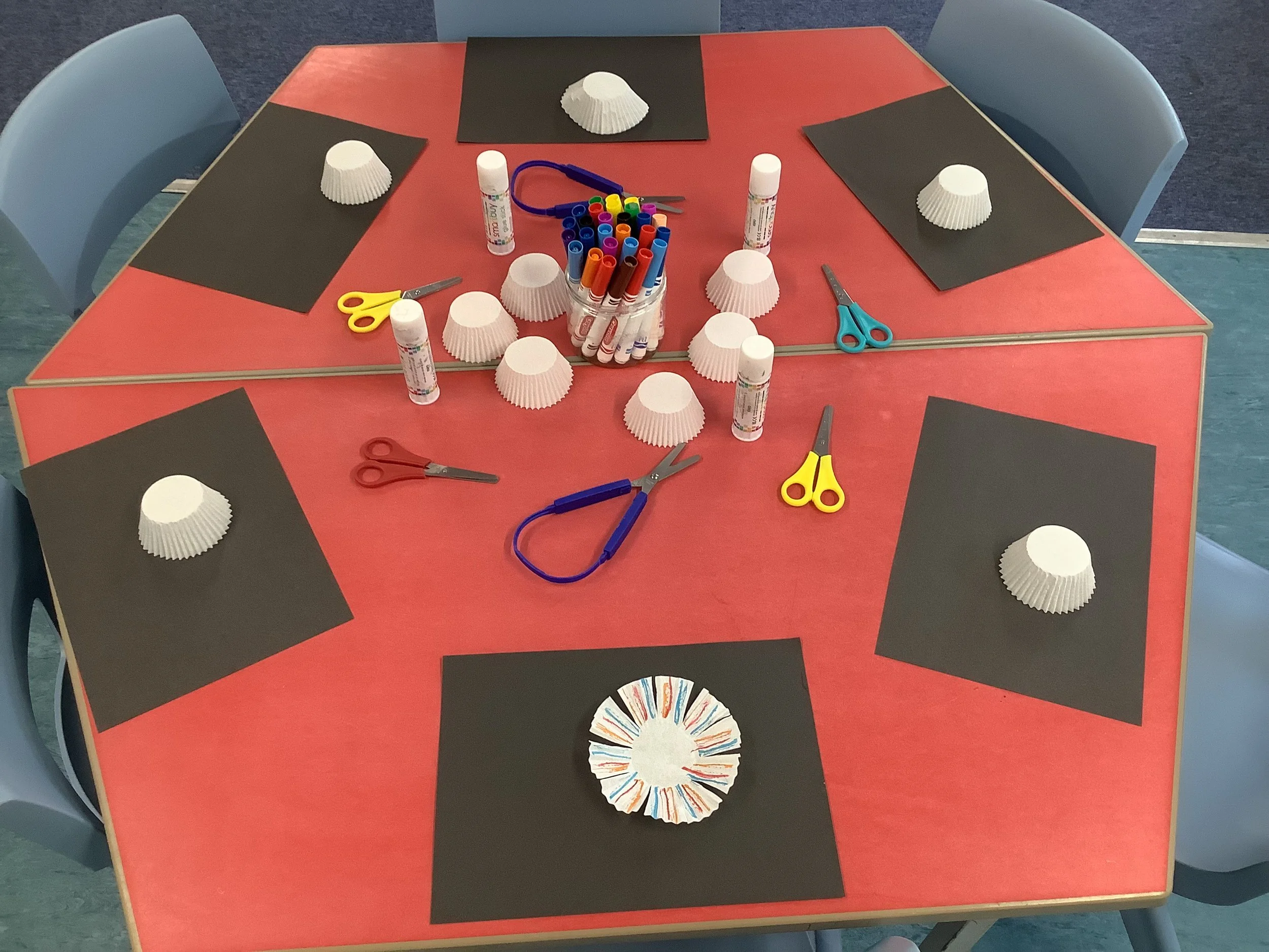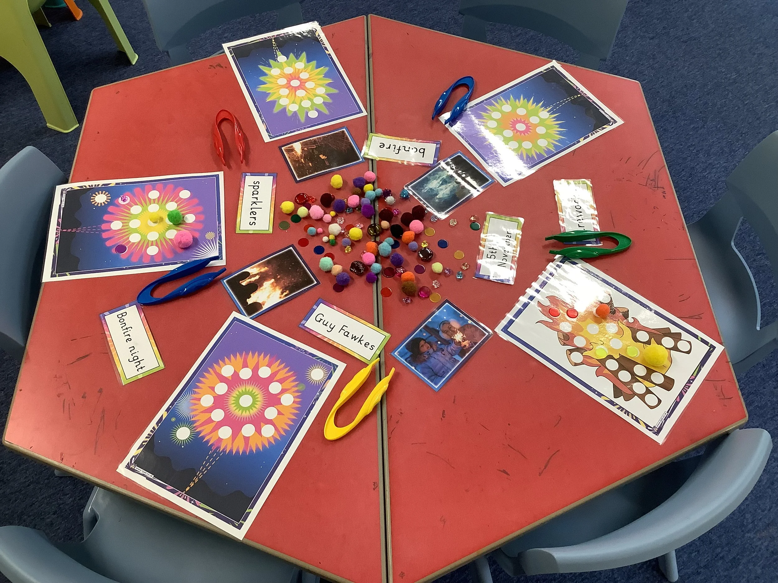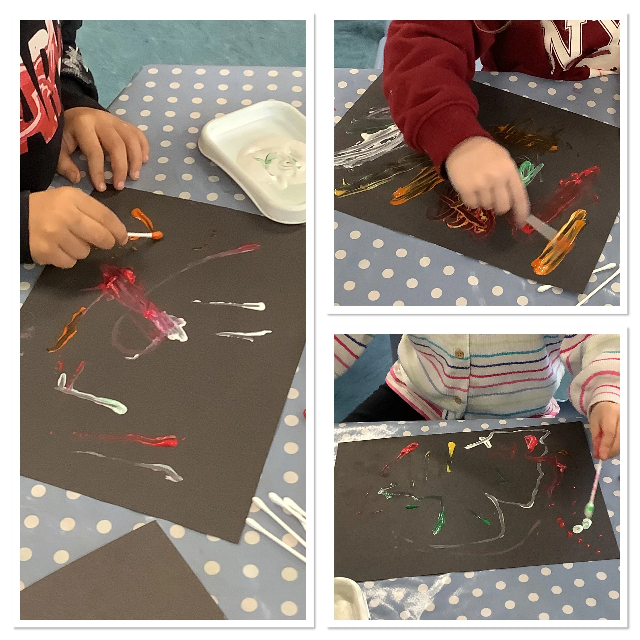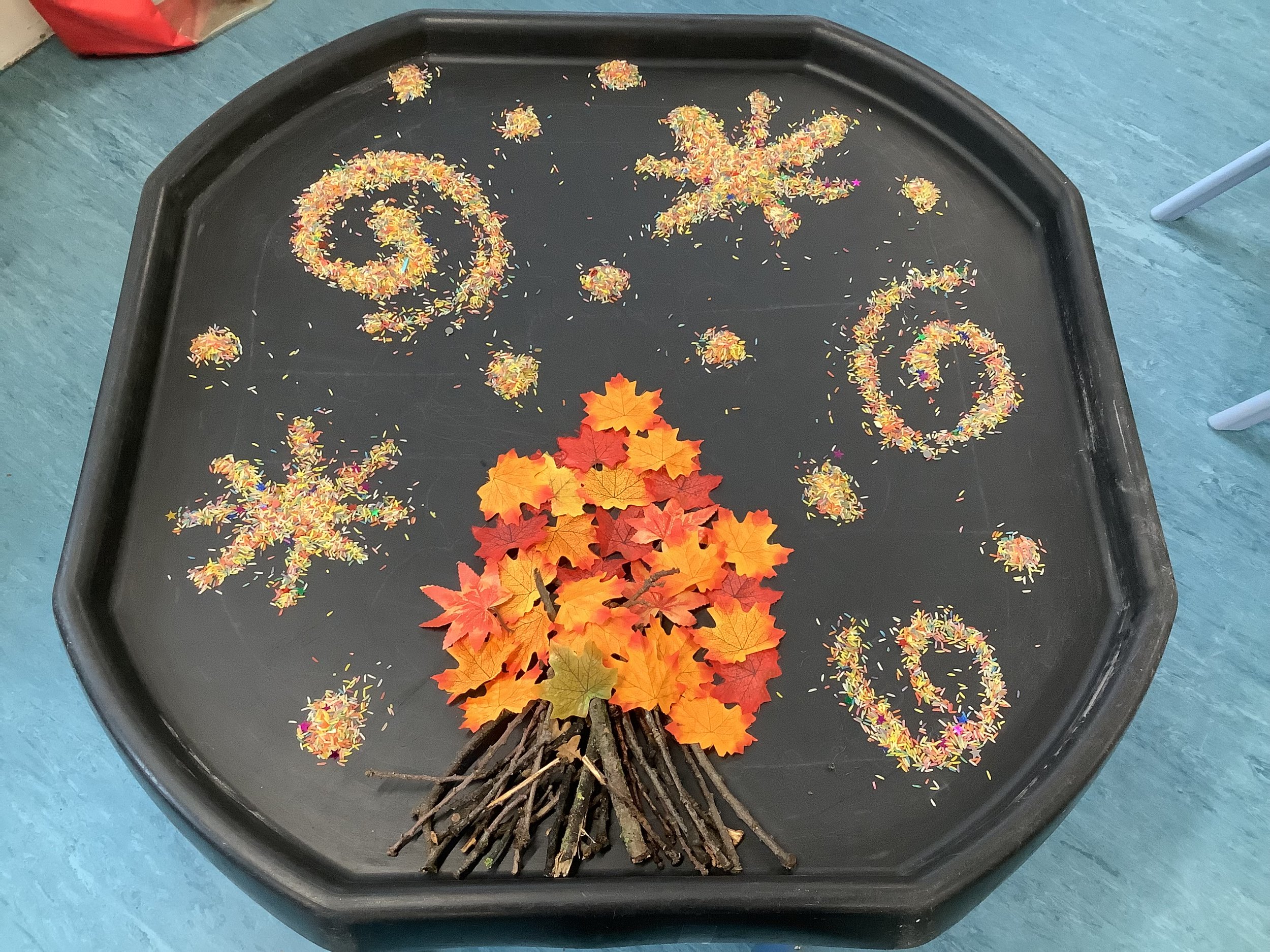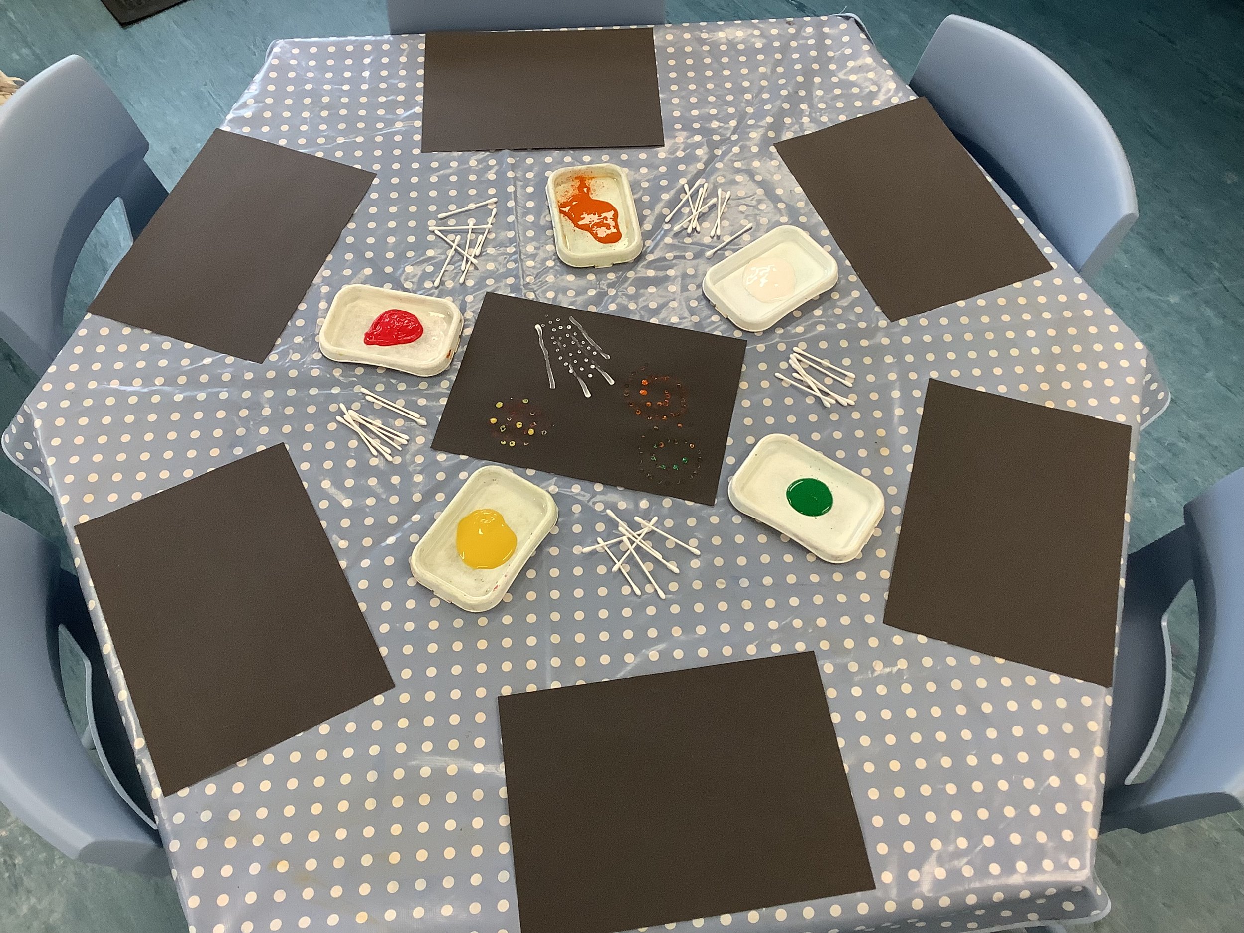 This week at playgroup we have been exploring bonfire night and fireworks, looking at all of the beautiful colours we see. The children created some amazing artwork including sparkly firework pictures using paint and glitter and colourful firework wands. We practiced our mark making skills swirling paint into shaving foam, looking at all of the different colours we could make as the colour mixed. We also used the special star patterns to create patterns in the tuff tray. The children used their shape knowledge to create some super rockets looking at the properties of all of the basic 2d shapes. We perfected our fine motor skills threading pipe cleaners and using tongs to place Pom poms on firework pictures. We also had 2 STEM - science activities this week firstly fizzing fireworks, using mini spray bottles and pipettes to drop brightly coloured vinegar onto bicarbonate of soda. And secondly we looked at the coloured milk activity which the children were absolutely fascinated in, watching the reaction between the milk fats and washing up liquid push the colour around the plate. In our cooking session we made some chocolate sprinkle sparklers It was lots of chocolatey fun for all! Come back next week as we take part in Nursery Rhyme Week and also join in the act of Remembrance