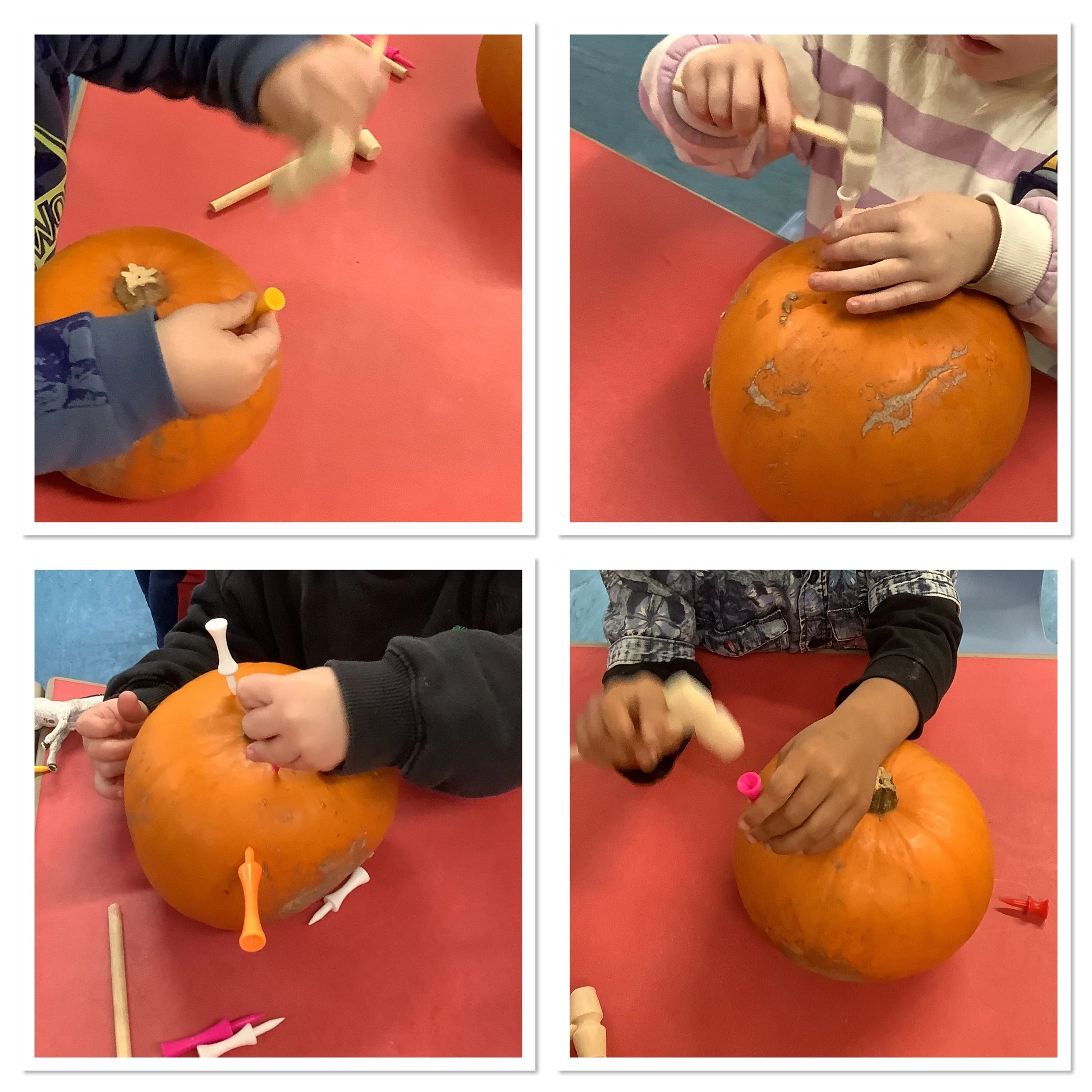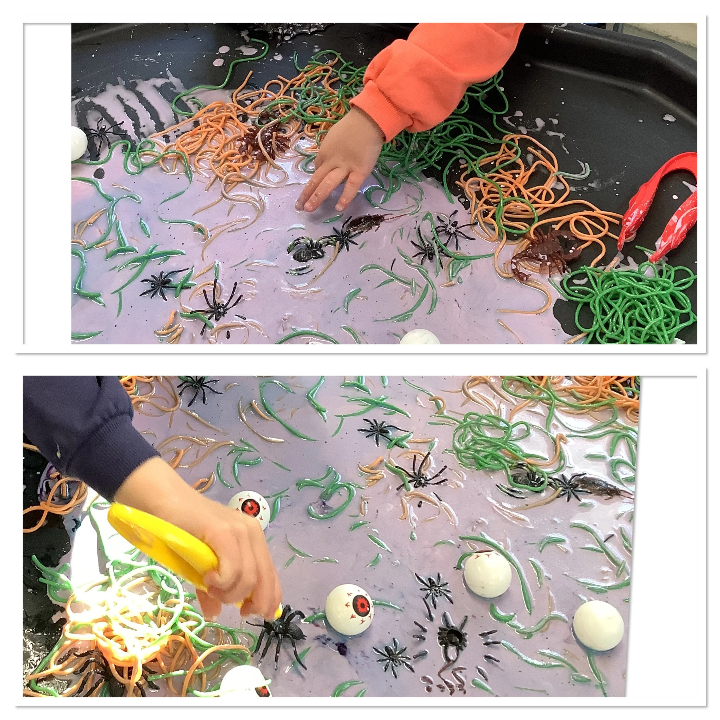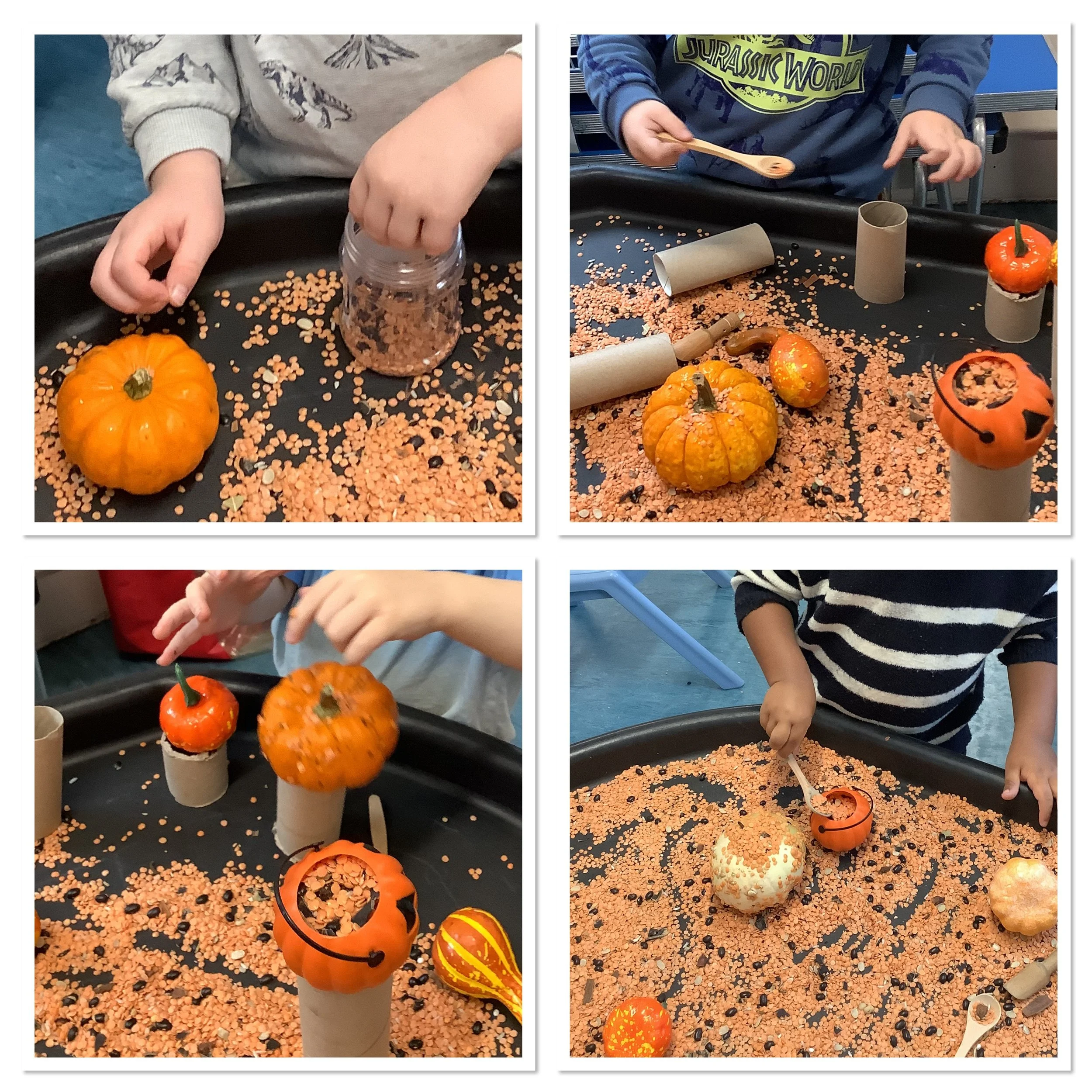 As this half term draws to a close many of our children are excitedly talking about pumpkin patch visits and special costumes they have for Halloween. So with this in mind this week there were some spooky goings on at the playhouse as we explored all things Halloween. We had so many activities involving pumpkins from playing paper plate pumpkin toss, hammering in golf tees to painting , washing and finally carving them. We explored spooky Oobleck, created some funny monsters and also made some paper plate spooks. We used our super scissor skills at the witches haircut tuff tray, carefully giving them all a lovely trim in time for Halloween Our cooking activity was sweet potato mini pizzas cut into pumpkins shapes which were absolutely delicious. Our stories this week were • There’s a Witch in your Book • We’re going on a Pumpkin Hunt