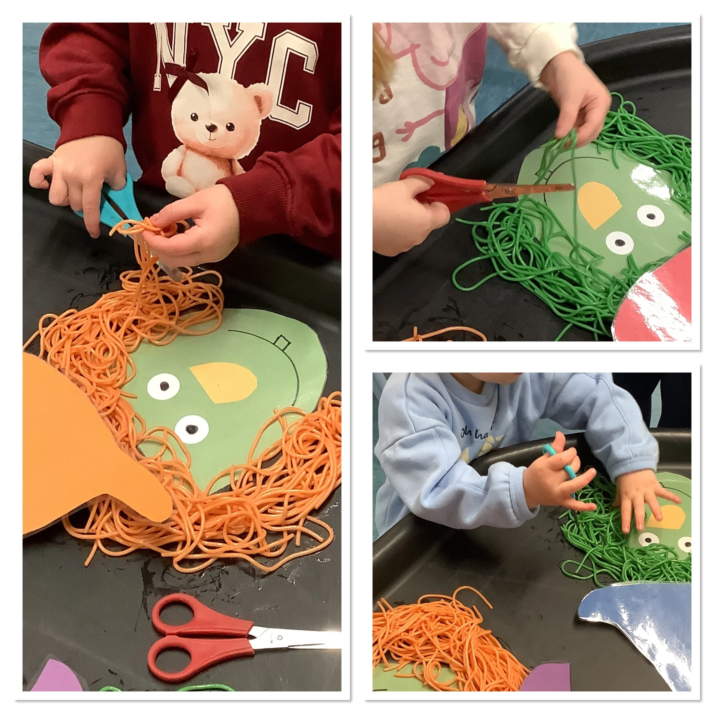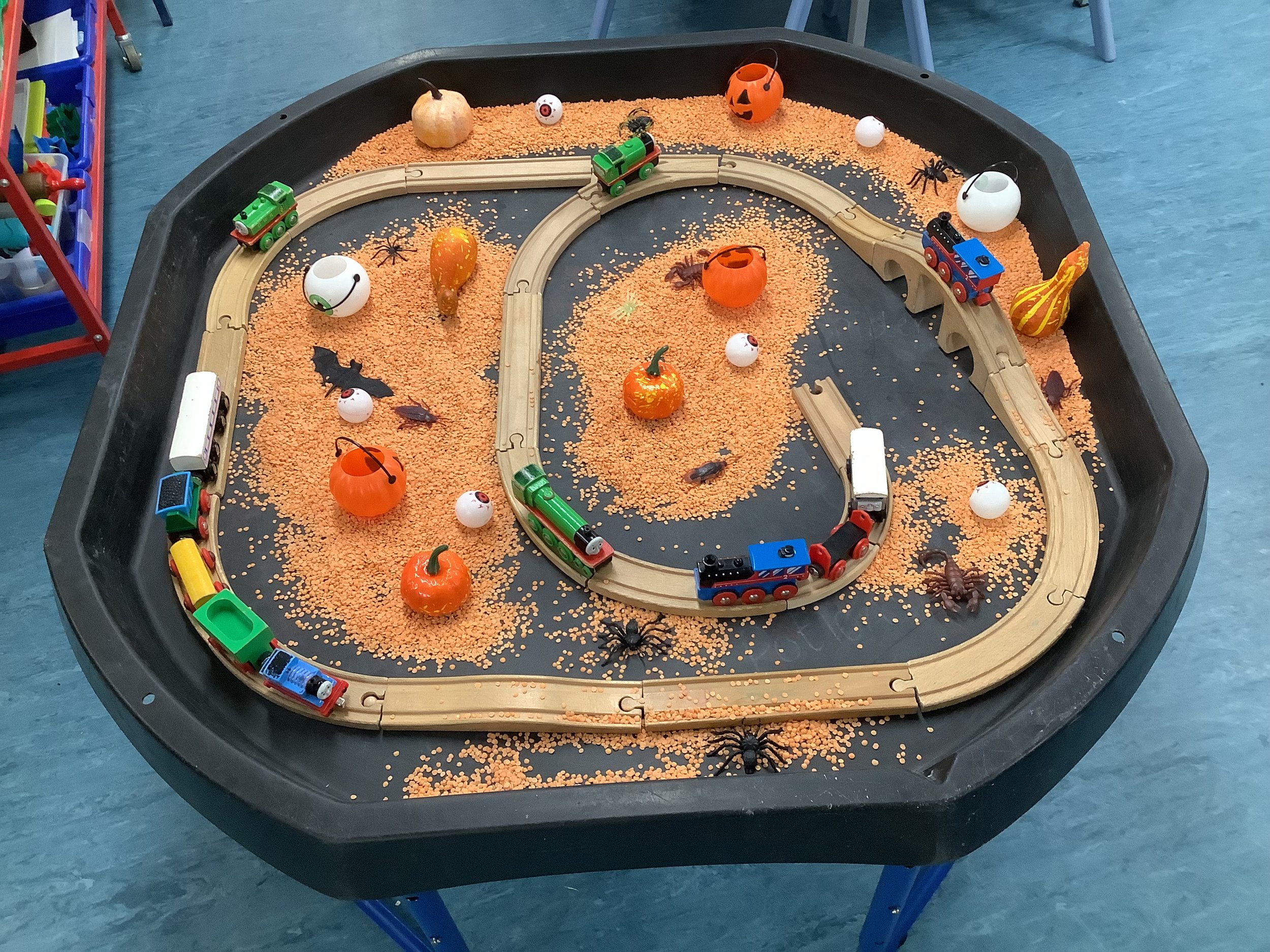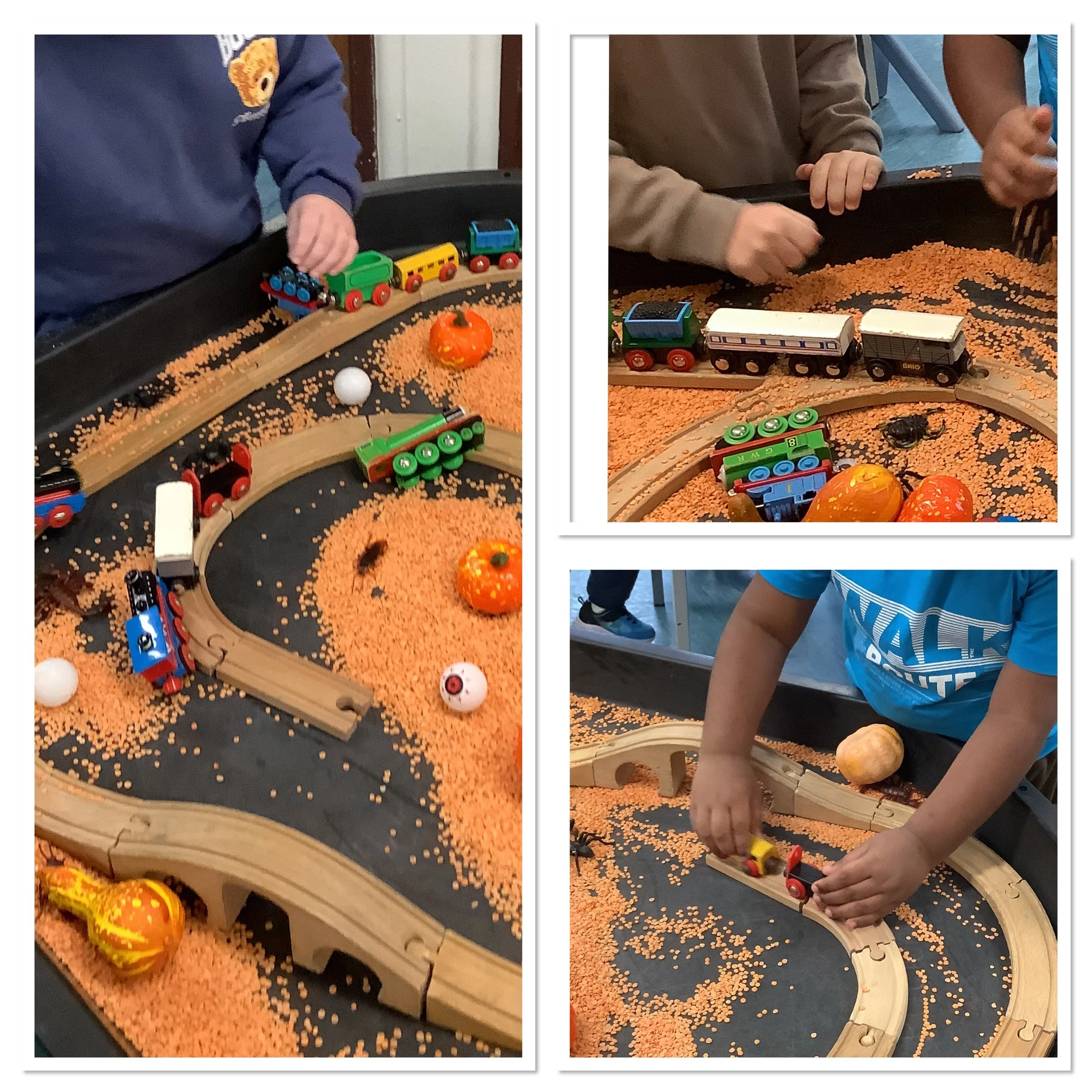 As this half term draws to a close many of our children are excitedly talking about pumpkin patch visits and special costumes they have for Halloween. So with this in mind this week there were some spooky goings on at the playhouse as we explored all things Halloween. We had so many activities involving pumpkins from playing paper plate pumpkin toss, hammering in golf tees to painting , washing and finally carving them. We explored spooky Oobleck, created some funny monsters and also made some paper plate spooks. We used our super scissor skills at the witches haircut tuff tray, carefully giving them all a lovely trim in time for Halloween Our cooking activity was sweet potato mini pizzas cut into pumpkins shapes which were absolutely delicious. Our stories this week were • There’s a Witch in your Book • We’re going on a Pumpkin Hunt