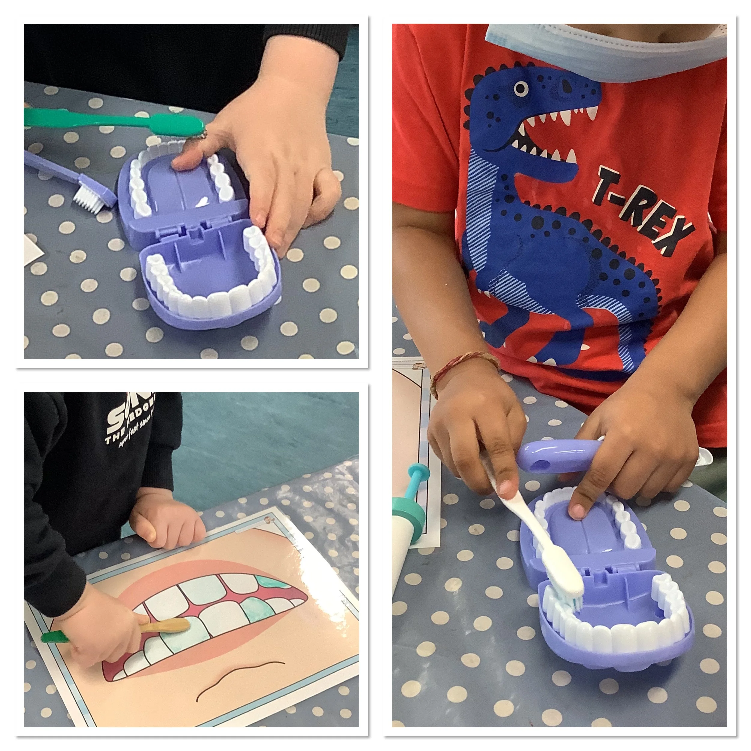 We made some delicious apple crumble in our cookery session, the children carefully cut the apples up perfecting their knife skills and then weighed and measured the ingredients for the crumble mix. Our weekly cookery sessions cover so many of the areas of learning and are great fun, the children love to show and share what they’ve made with their families. As part of our harvest celebration the staff and children all donated to our Harvest food collection for our local Foodbank. We had great fun delivering everything we’d collected walking through the village spotting buses, house numbers and signs and of course meeting the lovely Foodbank volunteers at the Baptist Chapel. On our way back we did some dinosaur spotting in a garden along the way and also spotted some ghost and pumpkin ornaments too